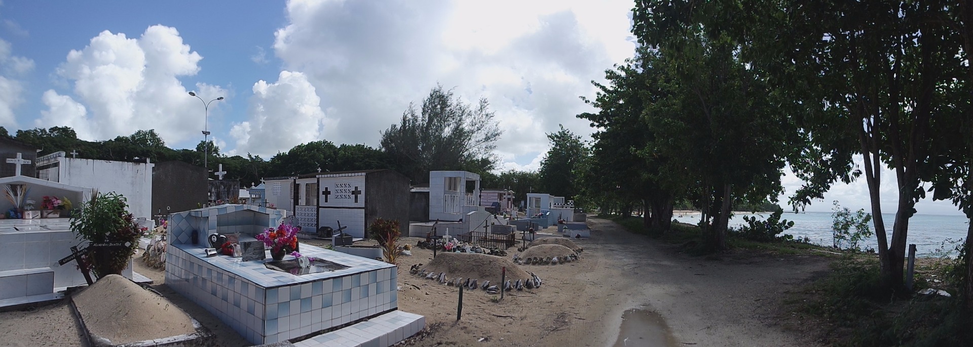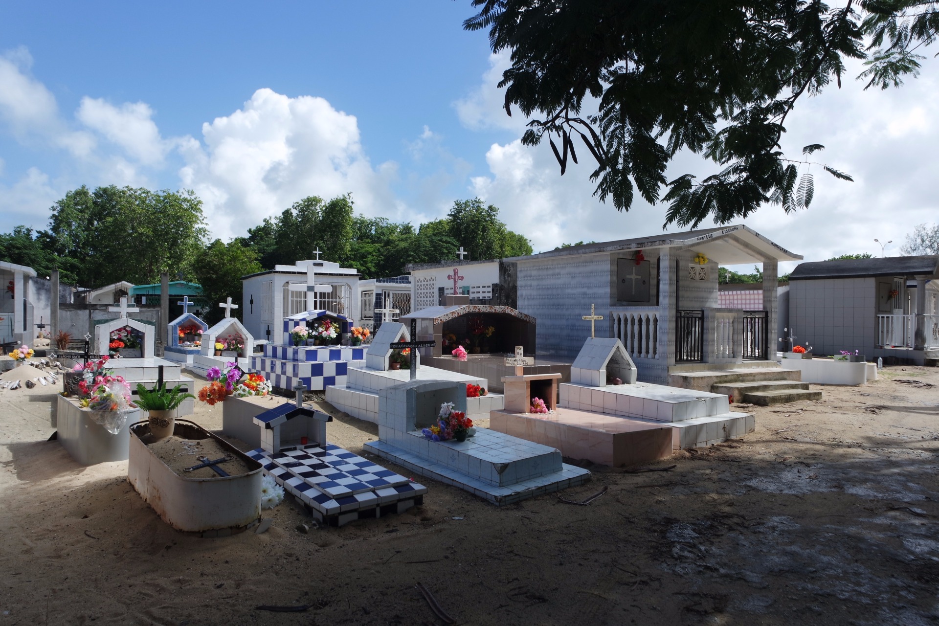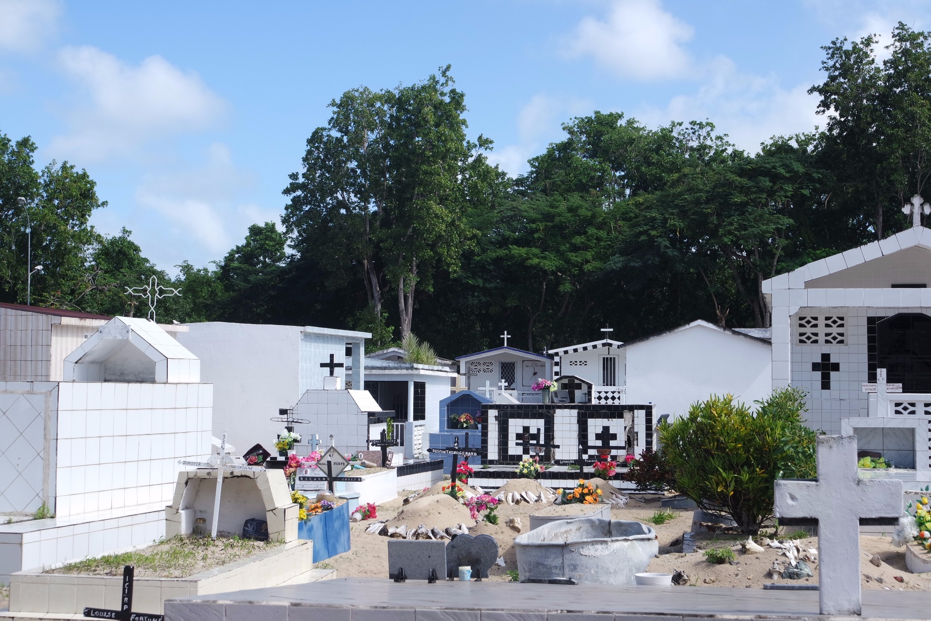 Guadeloupe-on nagyon tisztelik a halottakat (néha jobban, mint az élőket), ezért saját "házat" építenek nekik! A temetőkből általában szép kilátás nyílik, gyakran a tenger mellett épültek, ezért gyakran kerülnek viharba. De ehhez képest egészen jó allapotban vannak. Rengeteget csempéből raknak ki, de van olyan is ami kőből van. A leggyakoribb a kék-fehér és világos színű. Ezekben a temetőkben nincs meg az a tipikus temető érzés (az a mindjárt előjön a szellem és visz a halálba), mint ami megvan mindegyik Európaiban.